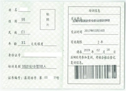 培訓(xùn)后頒發(fā)云南省消防協(xié)會(huì)統(tǒng)一印制的《消防安全合格證》,證書全省通用。本證書面向社會(huì)單位開展消防安全教育、消防安全責(zé)任人、管理人培訓(xùn)、滅火演練培訓(xùn)等,并頒發(fā)消防安全培訓(xùn)合格證。