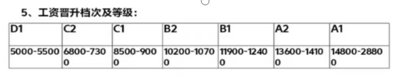 入職前1—6個(gè)月執(zhí)行5000-6000元;6—12個(gè)月可晉升為6800-7300元;每半年考核晉升一次,月薪資漲幅600-1200;工作滿一年工資8000元左右;工作滿2年,月薪資可達(dá)9000-12000,工作滿兩年半,月薪資可達(dá)12000-14000。