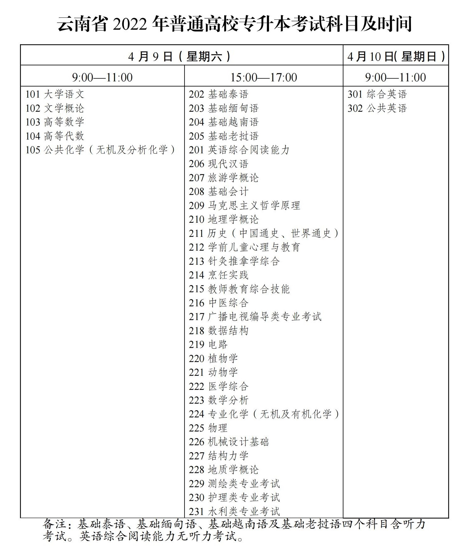 根據(jù)《云南省教育廳關(guān)于調(diào)整云南省2022年普通高校專升本考試時間的通知》要求, 原暫定于 2022 年4月16-17日進(jìn)行的云南省2022年普通高校專升本考試,因與2022年上半年全國高等教育自學(xué)考試時間沖突,考慮到4月23-24日進(jìn)行2022 年護(hù)士執(zhí)業(yè)資格考試,經(jīng)研究,決定將云南省2022年普通高校專升本考試時間調(diào)整為4月9-10日。請各位考生認(rèn)真?zhèn)淇,做好疫情防控工作,相關(guān)附件如下: