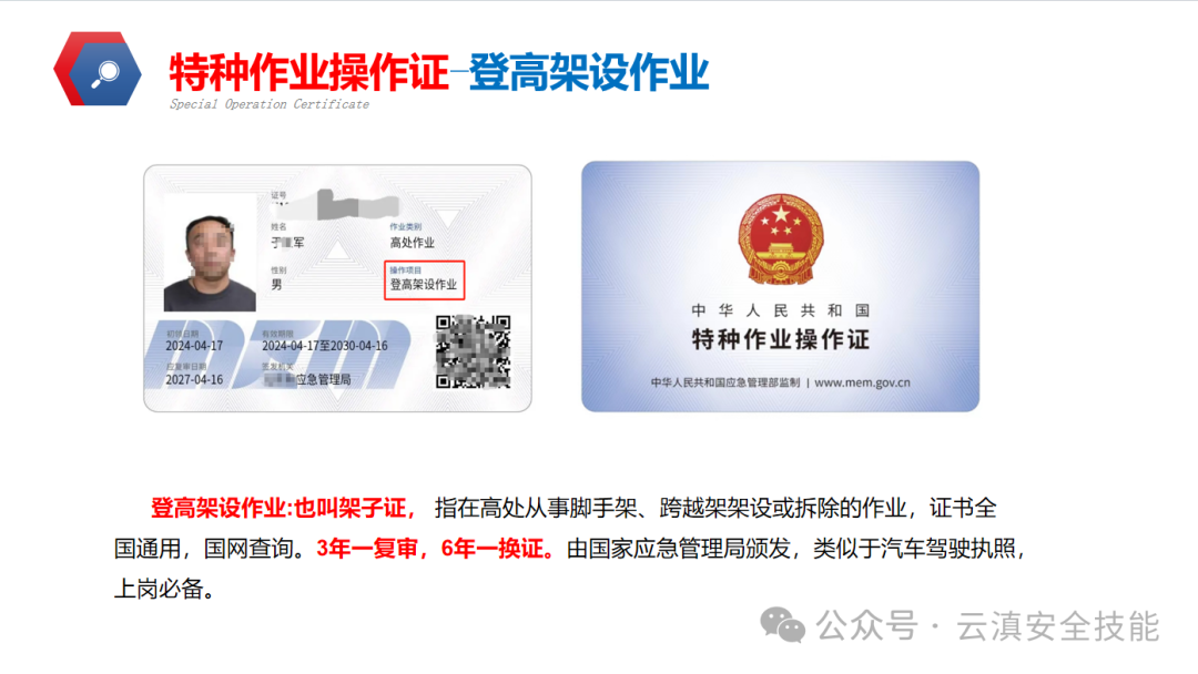 高空作業(yè)有風(fēng)險(xiǎn),稍有疏忽就可能釀成事故,根據(jù)《特種作業(yè)人員安全技術(shù)培訓(xùn)考核管理規(guī)定》高空作業(yè)人員必須經(jīng)專門的安全技術(shù) 培訓(xùn)并考核合格,取得《中華人民共和國特種作業(yè)操作證》(以下簡稱特種作業(yè)操作證)后, 方可上崗作業(yè)。