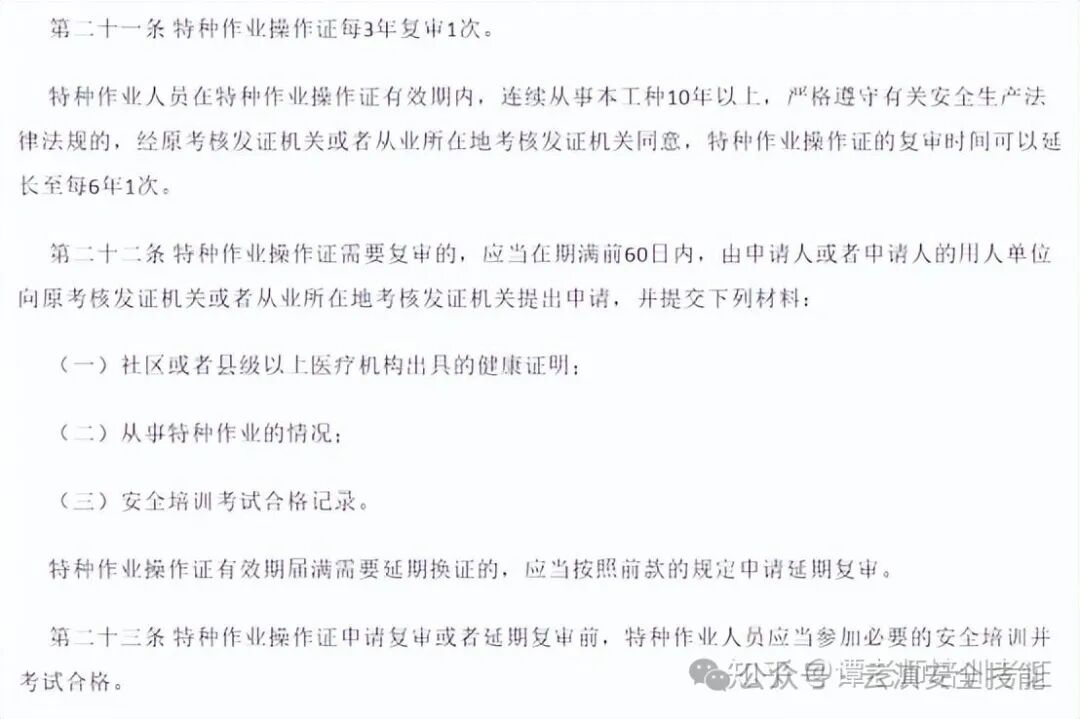 特種作業(yè)操作證有效期屆滿需要延期換證的,應(yīng)當(dāng)按照前款的規(guī)定申請(qǐng)延期復(fù)審。