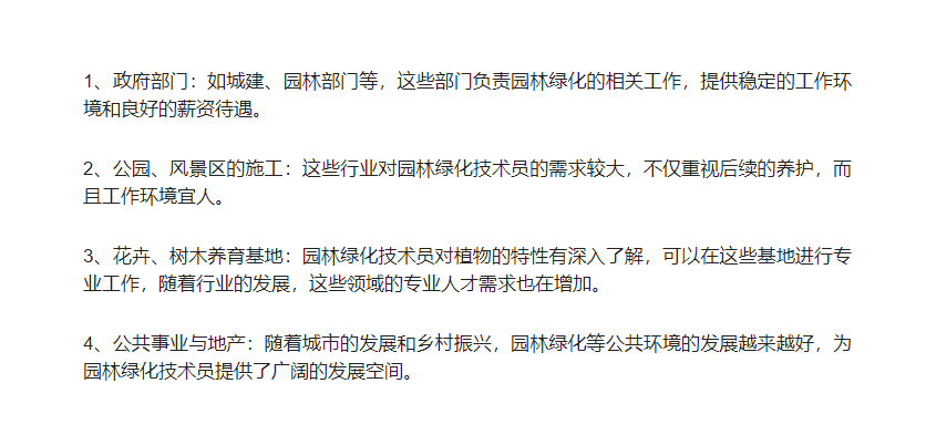 4、想提升自己的知識技能,增加崗位待遇,擴大職業(yè)發(fā)展方向的人:通過考取園林綠化工證書,可以提升個人專業(yè)技能,增加崗位待遇,并拓寬職業(yè)發(fā)展方向。